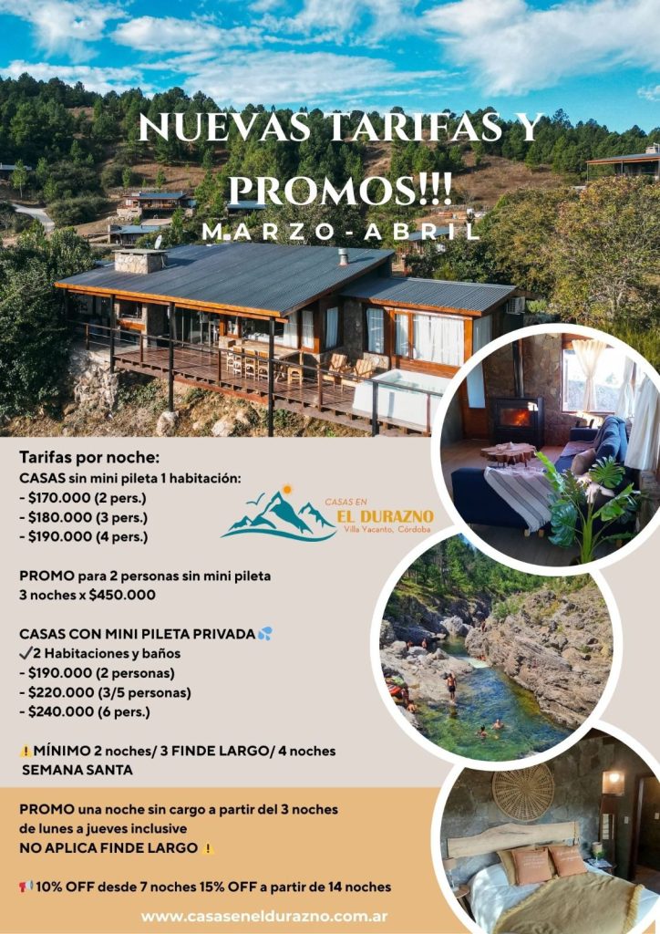 Descuento exclusivo para huéspedes de Casas en el Durazno cupo mínimo 3 Adultos